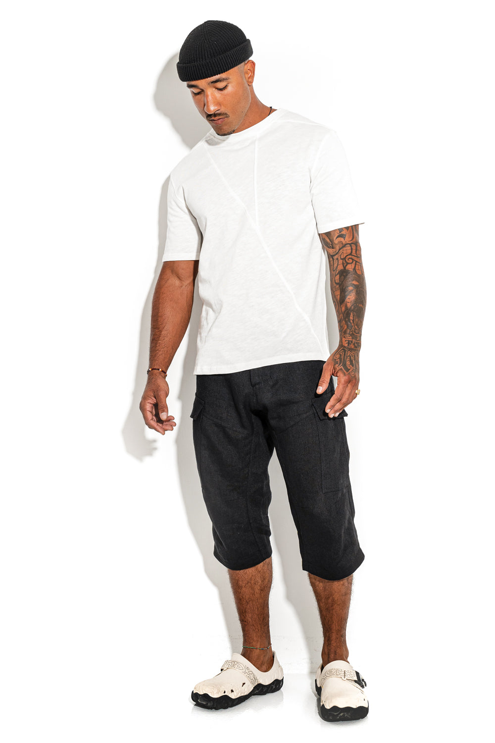 Made of light, soft cotton and decorated with a straight seam in the front.