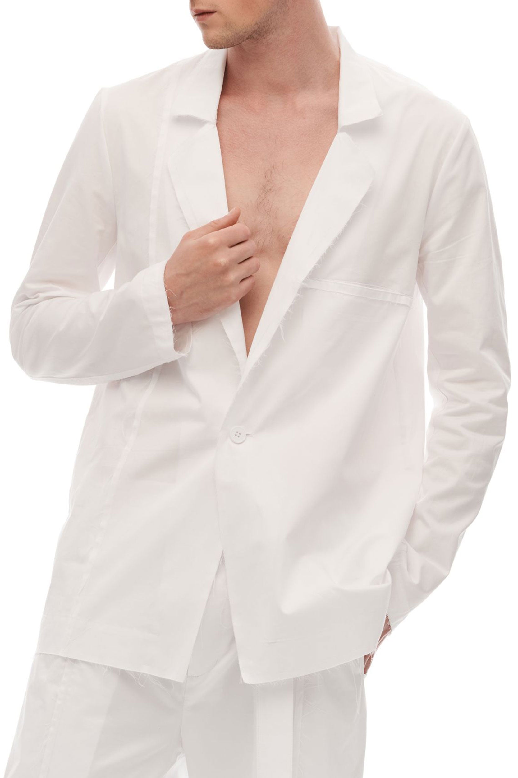 Keep things simple and suave with the Unbreacable jacket, a cool take on classic tailoring. This piece is crafted with great attention to detail—from its gently tailored fit to the secret pocket and single-button fastening, this white straight jacket made from soft cotton offers exceptional comfort and a chic, effortless look.