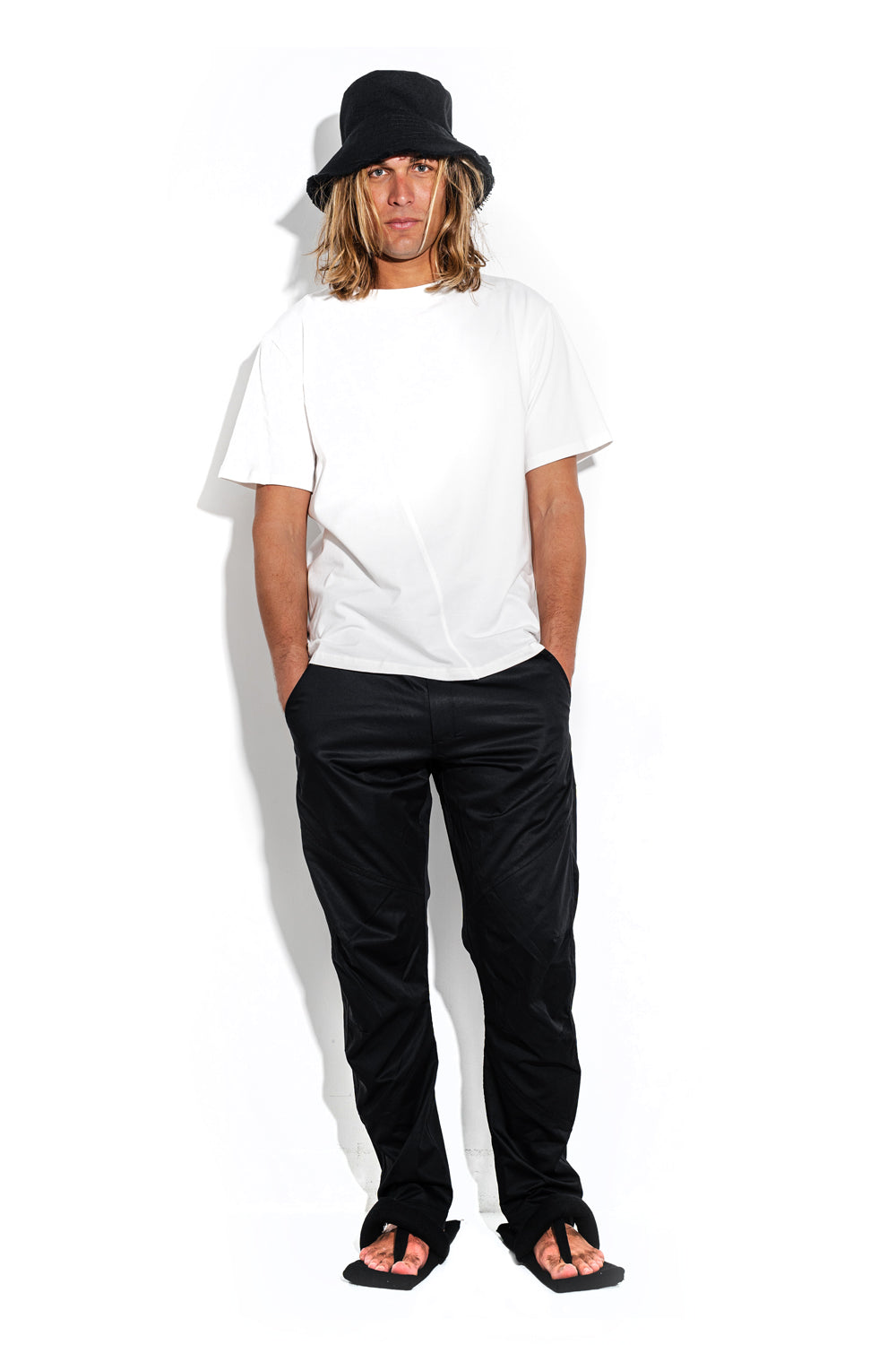 This tee is more interesting than a basic white T-shirt. It is made of soft natural cotton and decorated with a geometric seam in the front.