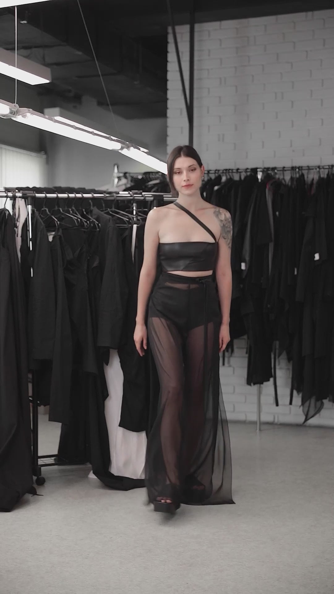 Painting the vision to be romantic and sensual, but at the same time tasteful and chic, the translucency of this piece is further heightened with the contrasting leatherette ties that go around the waist to cinch your shape.